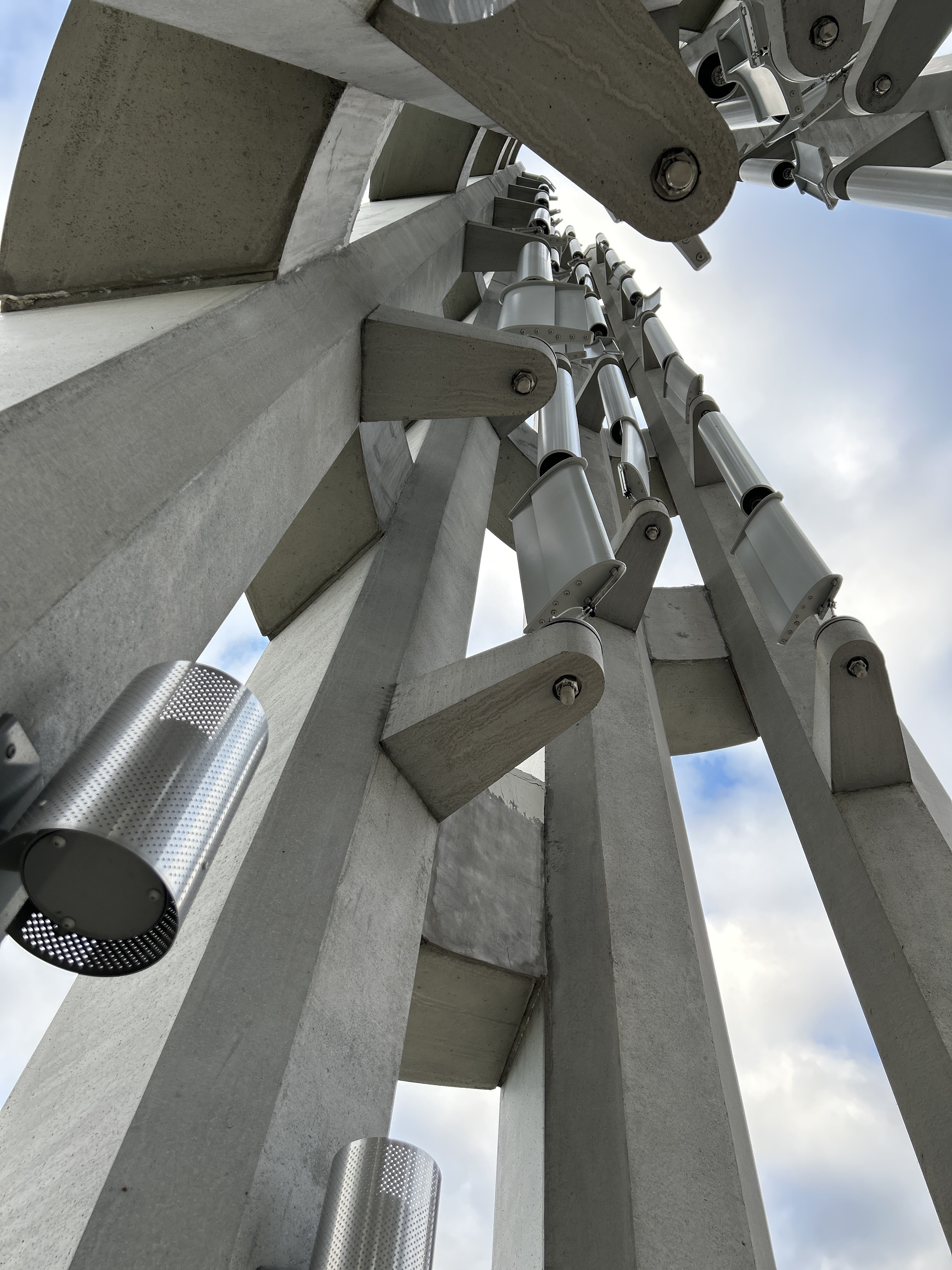 On the day we visited, we were the only two people for miles around. Just as we walked toward the tower’s base, the wind picked up, and we heard the faint sounds of the 40 individual wind chimes. Suddenly, they all began to chime; we were surrounded by the most peaceful melody I had ever heard. It is incredible.